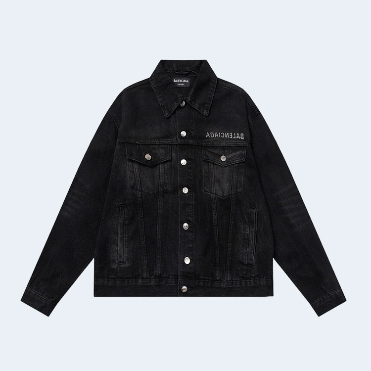 발렌시아가 백 자수 로고 데님 블랙 자켓